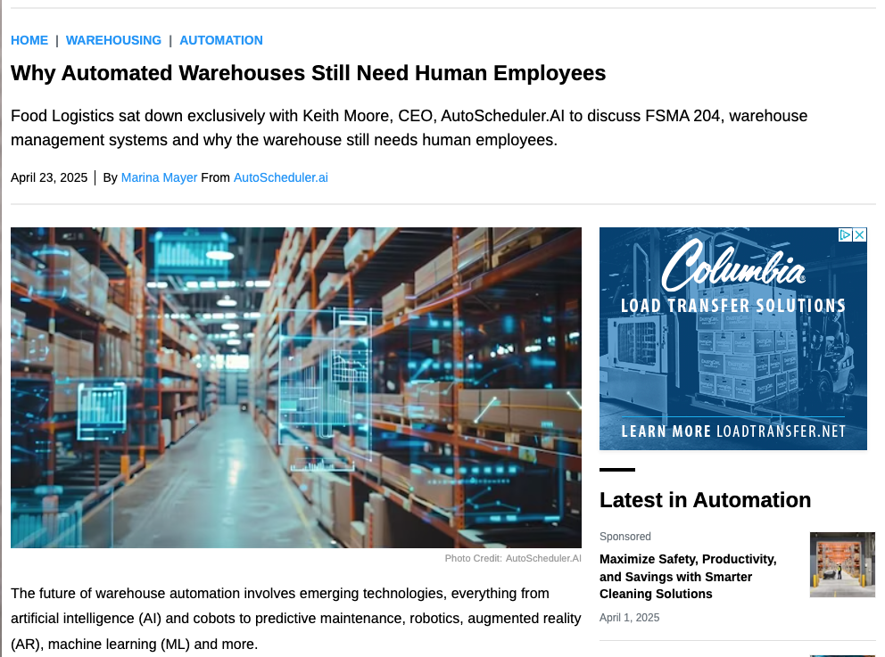“The MHI 2025 Industry Report and everyone I met at ProMat 2025 highlights the need for businesses this year to pursue a supply chain orchestration project, yet it wasn’t clear that people knew how to pursue one,” says Keith Moore, CEO of AutoScheduler.AI. “But our clients are already enjoying success from their orchestration projects deployed over the past year with benefits such as 30% increases in pick rates, 33% less detention and dwell times, 12%+ gains in productivity, 50% reduction in costs, and more.”