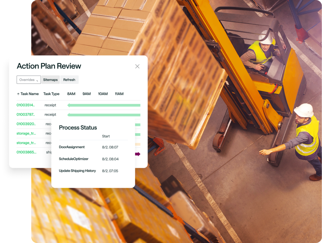 The Warehouse Decision Agent continuously aligns labor, inventory flow, and automation capacity to maintain productivity throughout the shift.